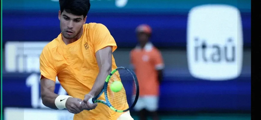 O torneio de Carlos Alcaraz em Miami começou contra João Fonseca, um promissor jogador da próxima geração com um grande apoio da diáspora brasileira na Flórida. O único título de Alcaraz em Miami havia sido em 2022, ele estava muito motivado e levou a melhor sobre Fonseca desde o início: quebrou o saque uma vez em cada set, não enfrentou nenhum break point em seu próprio saque e acertou cerca de 70% dos primeiros serviços, vencendo aproximadamente 80% desses pontos. Alcaraz simplesmente superou Fonseca em um confronto que foi uma excelente vitrine para ambos, e as coisas pareciam promissoras para Carlos.
